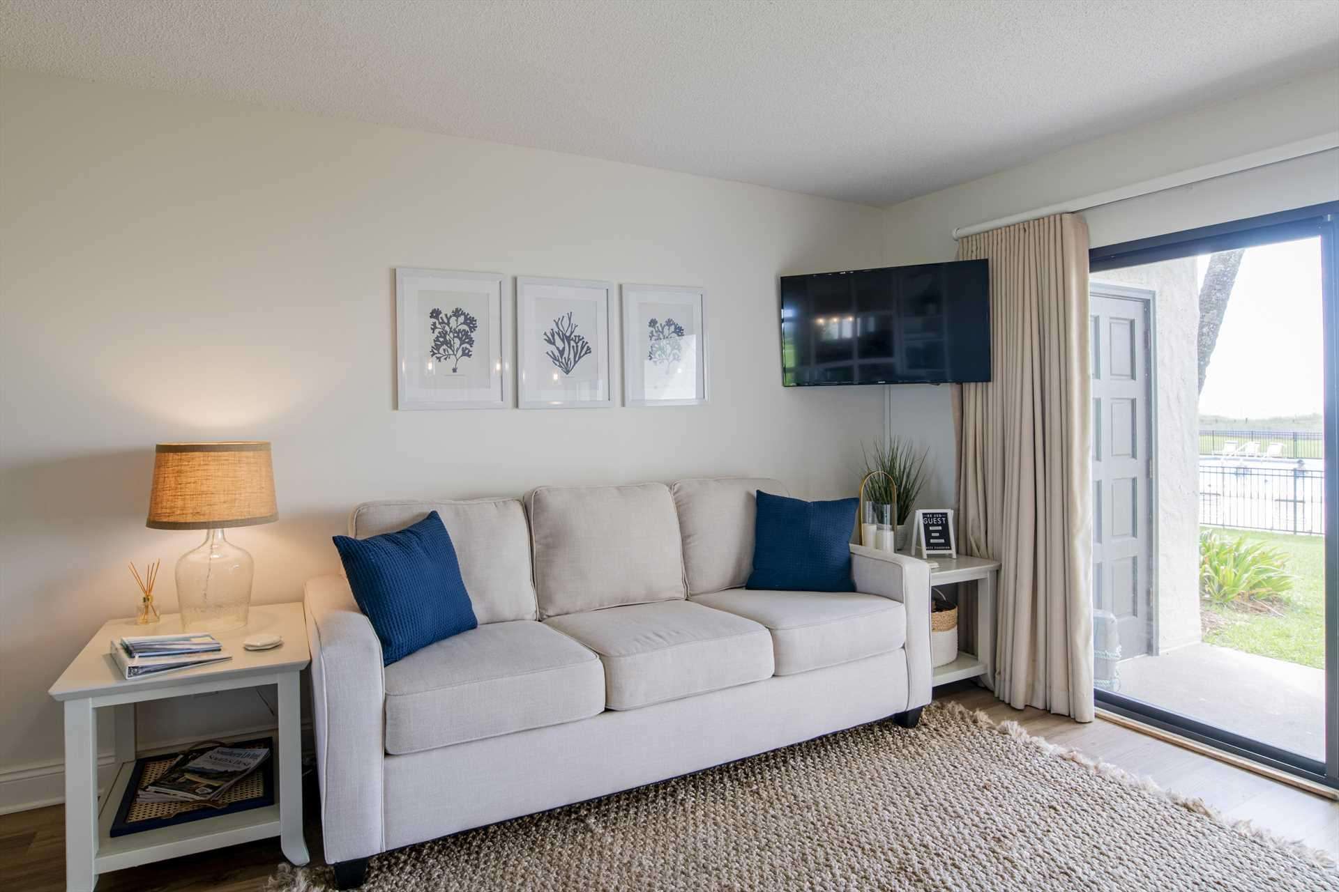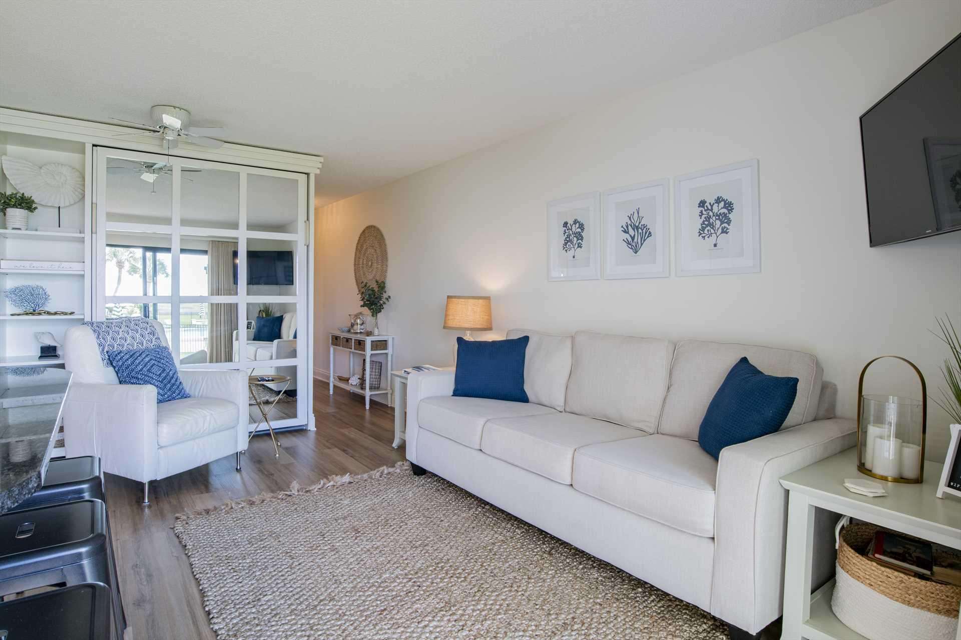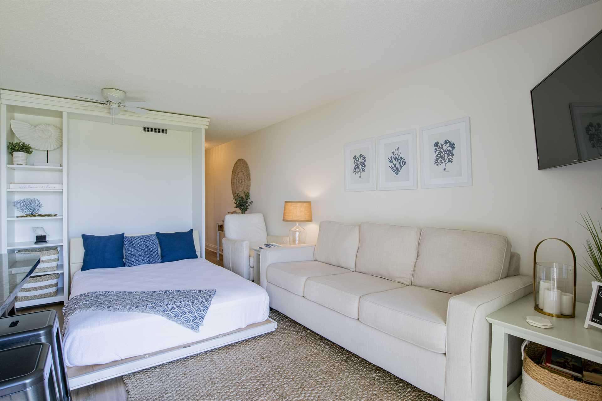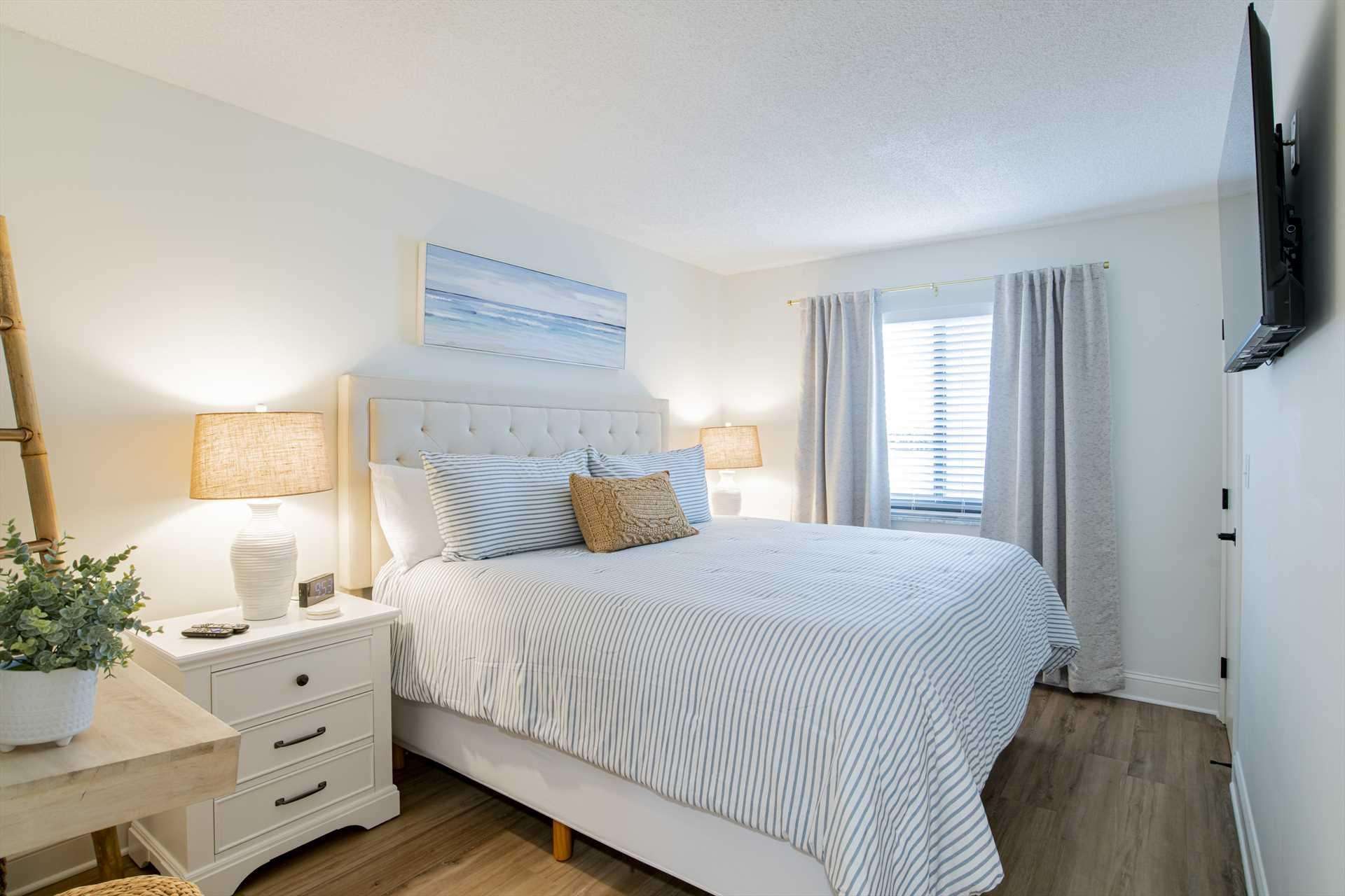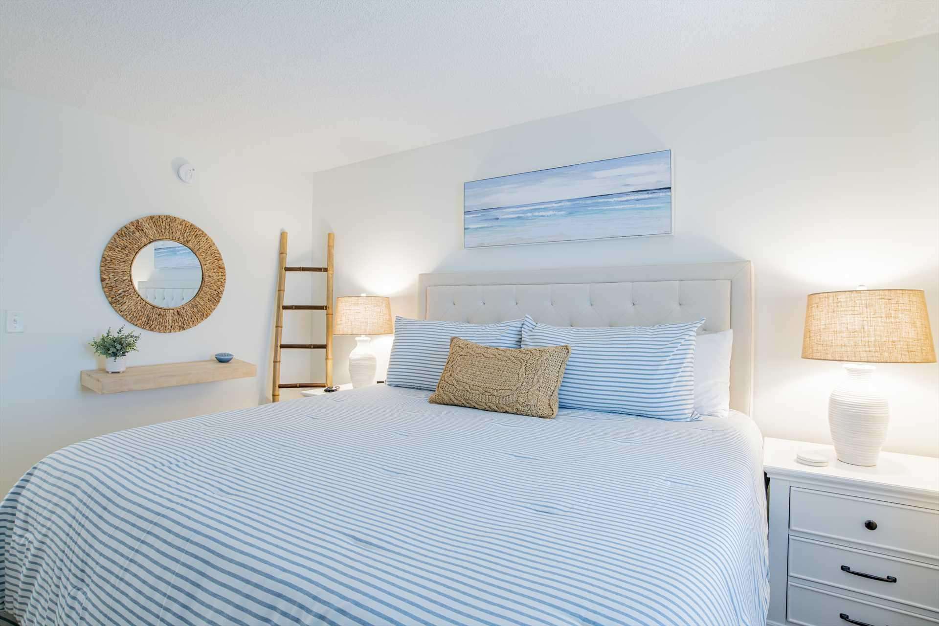 Bright and cozy bedroom with serene coastal decor and natural light - property