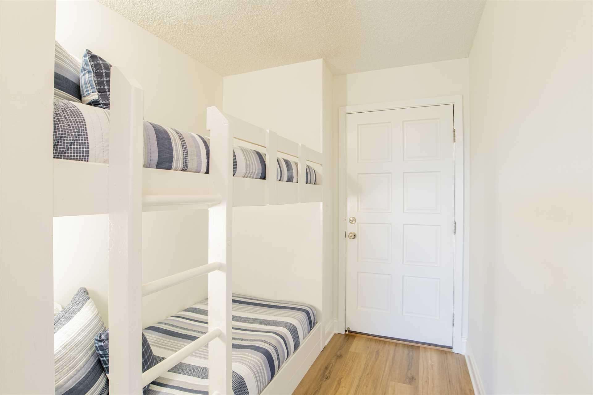 Cozy hallway bunks with crisp linens and bright natural light