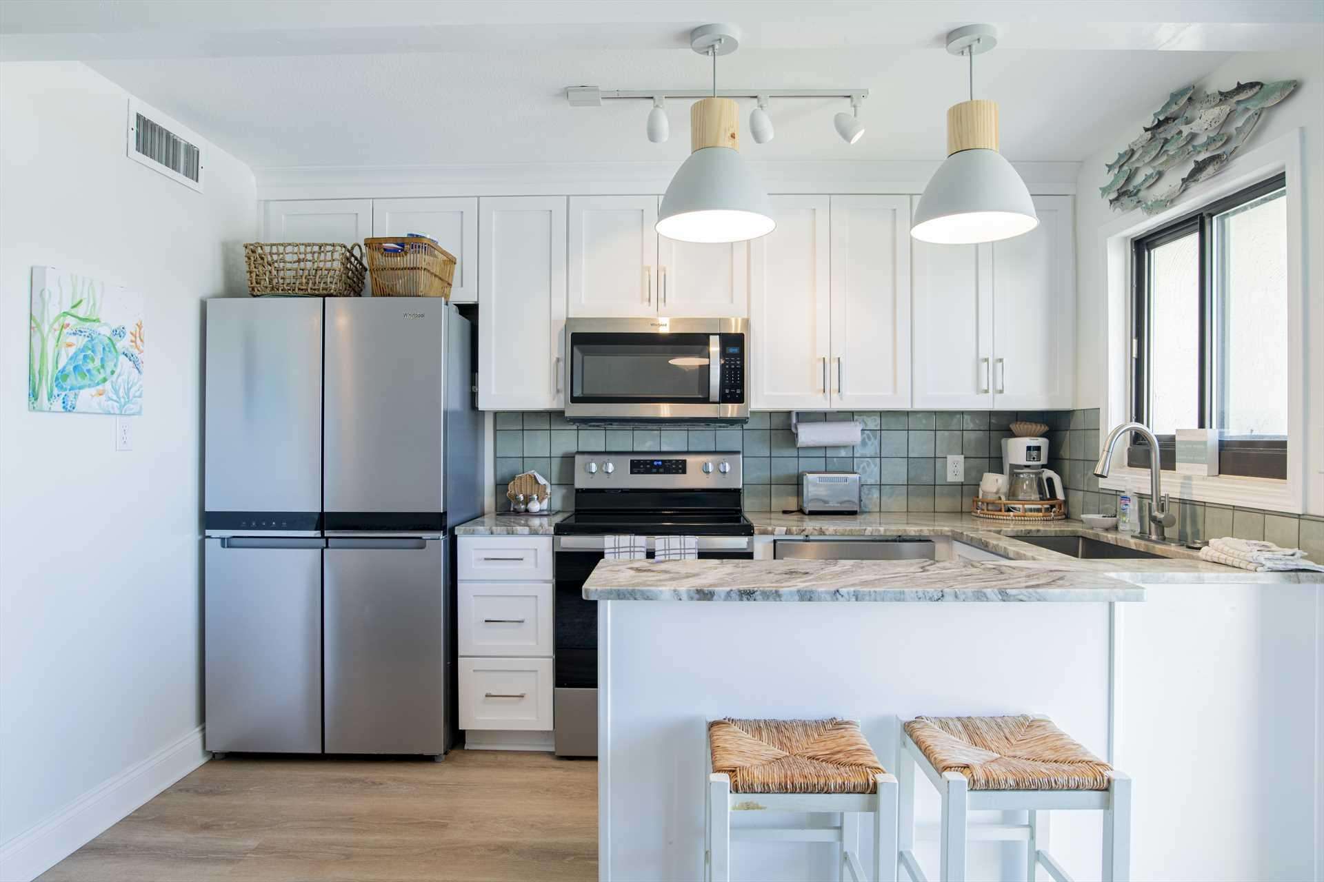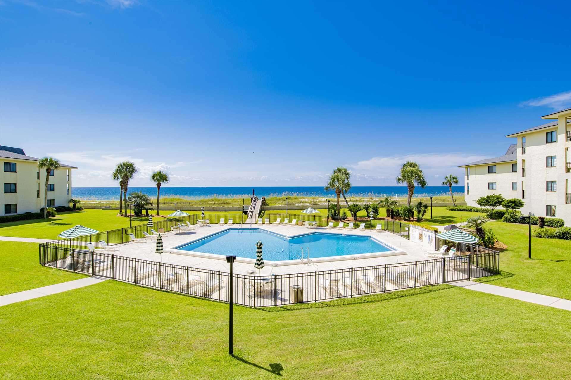 Discover the perfect coastal getaway at Mariner 210, a charming oceanfront 1-bedroom retreat nestled on the pristine shores of Perdido Key near Pensacola. This inviting condo offers breathtaking panoramic views of the Gulf of Mexico from a private balcony, where you can unwind to the soothing sounds of the waves. Inside, the bright and airy living space features modern comforts including air conditioning and a fully equipped kitchen with dishwasher, microwave, and coffee maker—ideal for preparing meals after a day at the beach.
