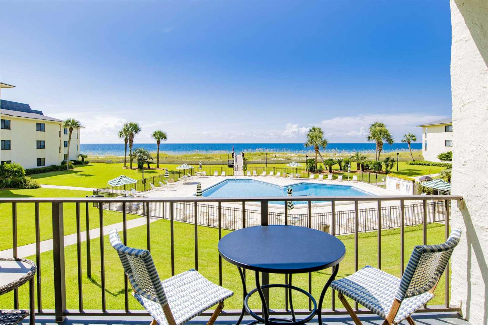 Enjoy breathtaking ocean views from this charming 1BR retreat in Perdido Key. Relax on the private balcony, unwind by the communal pool, or stroll the pristine beach just steps away.