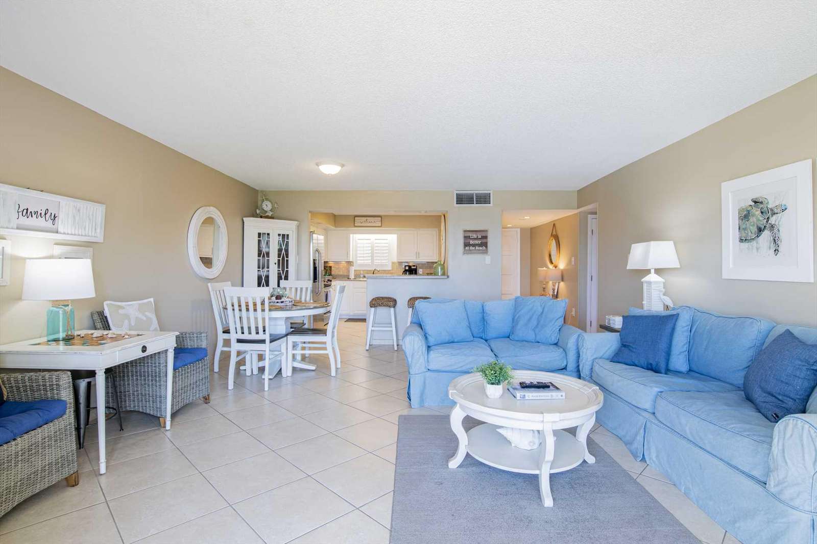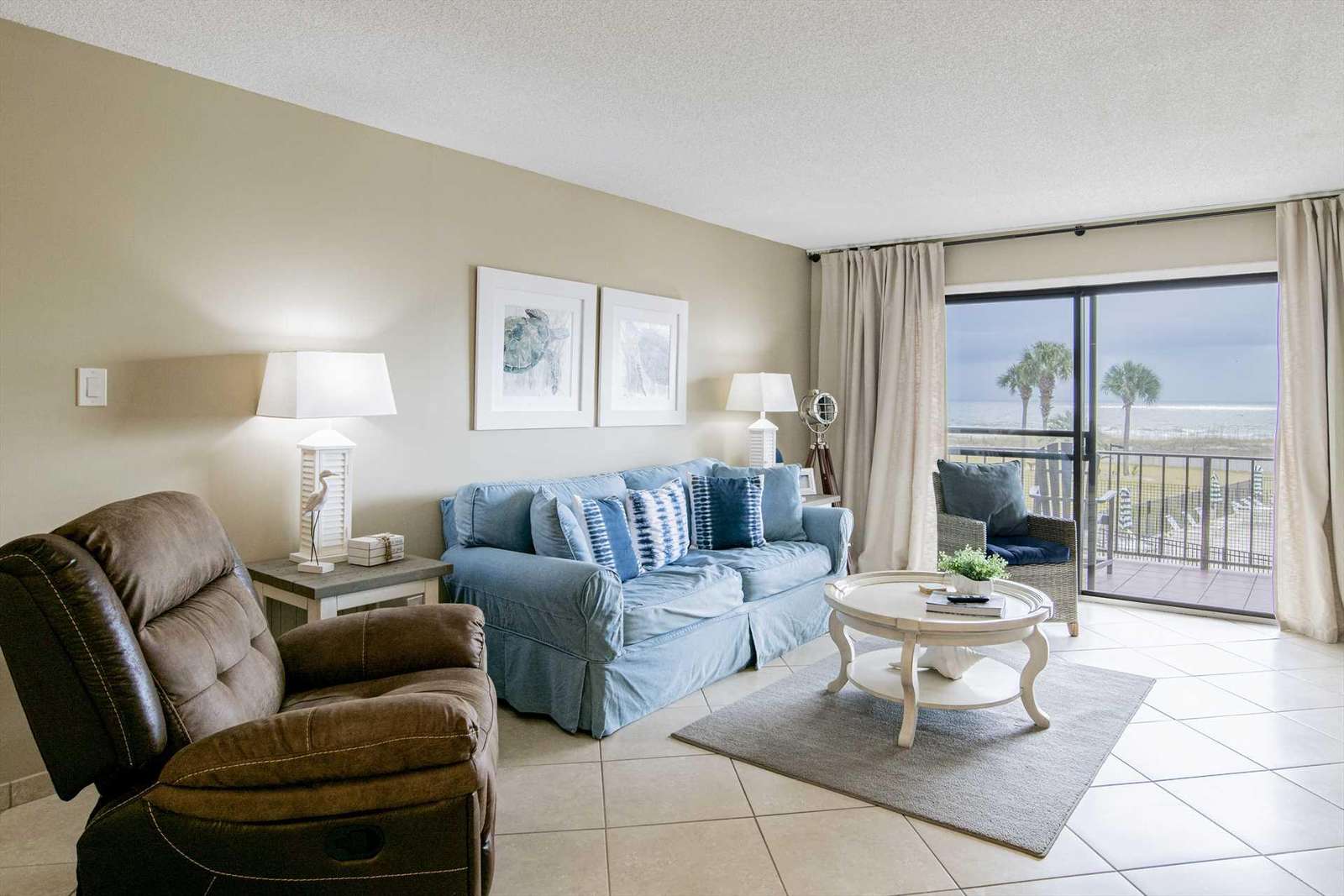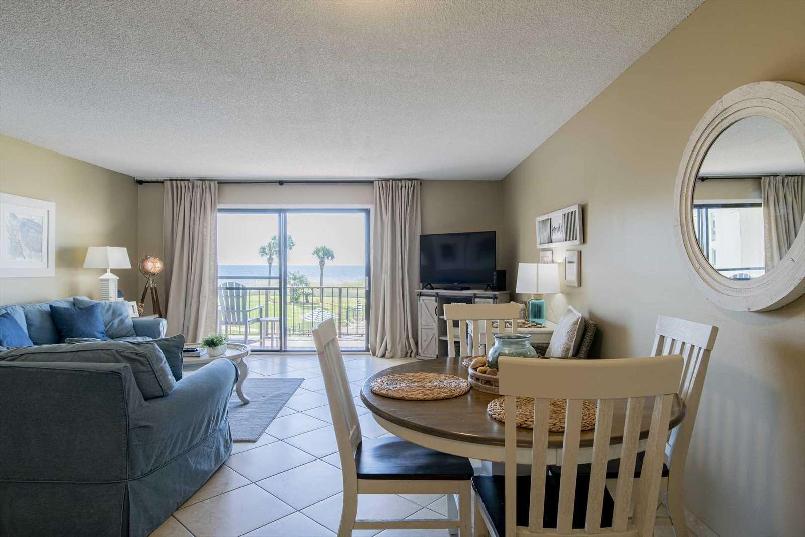 Discover the perfect oceanfront escape at Mariner 212, a stylish 2-bedroom, 2-bath retreat nestled on the pristine shores of Perdido Key in Pensacola, Florida. This bright and airy condo offers sweeping panoramic views of the Gulf of Mexico from its private balcony, where you can savor stunning sunrises and the soothing sound of waves. Inside, the spacious living area is thoughtfully furnished with modern comforts including air conditioning, a fully equipped kitchen with stainless appliances, and cozy dining space—ideal for relaxing or entertaining.