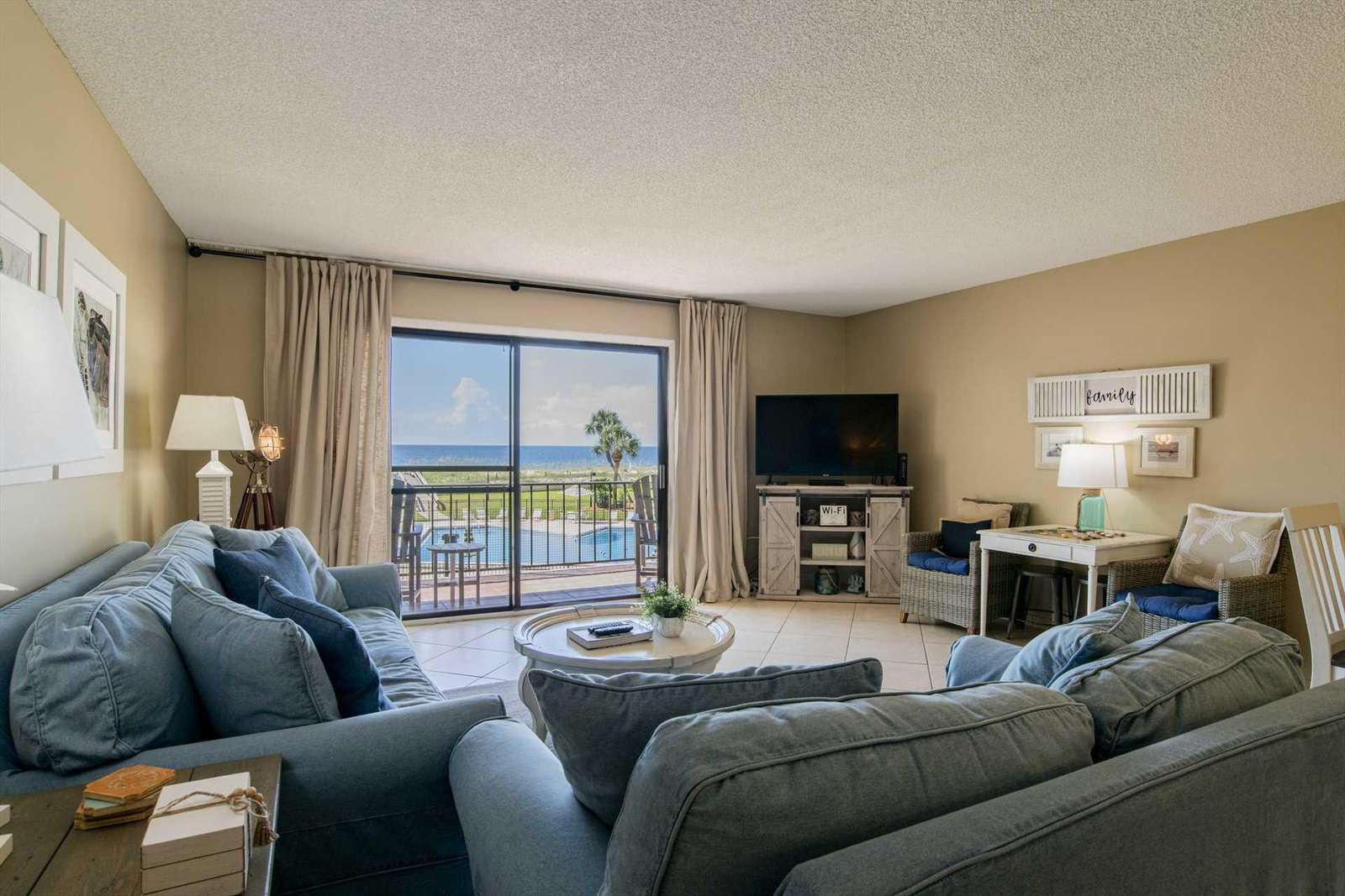 Experience breathtaking oceanfront views from this stylish 2BR retreat in Pensacola. Enjoy resort amenities including a pool, tennis courts, and direct beach access—perfect for a relaxing getaway.