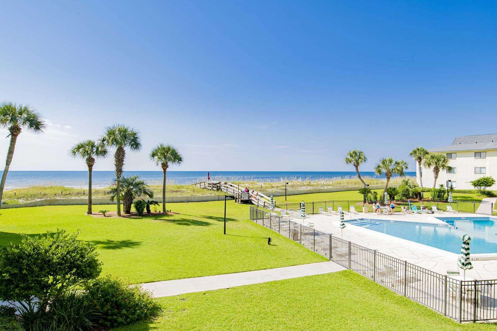 The fully equipped kitchen makes meal prep a breeze, while the spacious bedrooms provide restful comfort for up to six guests. Step outside to enjoy the community’s sparkling pool, tennis courts, and direct access to the white sandy beach just steps away. Convenient coin laundry facilities add to the ease of your stay.