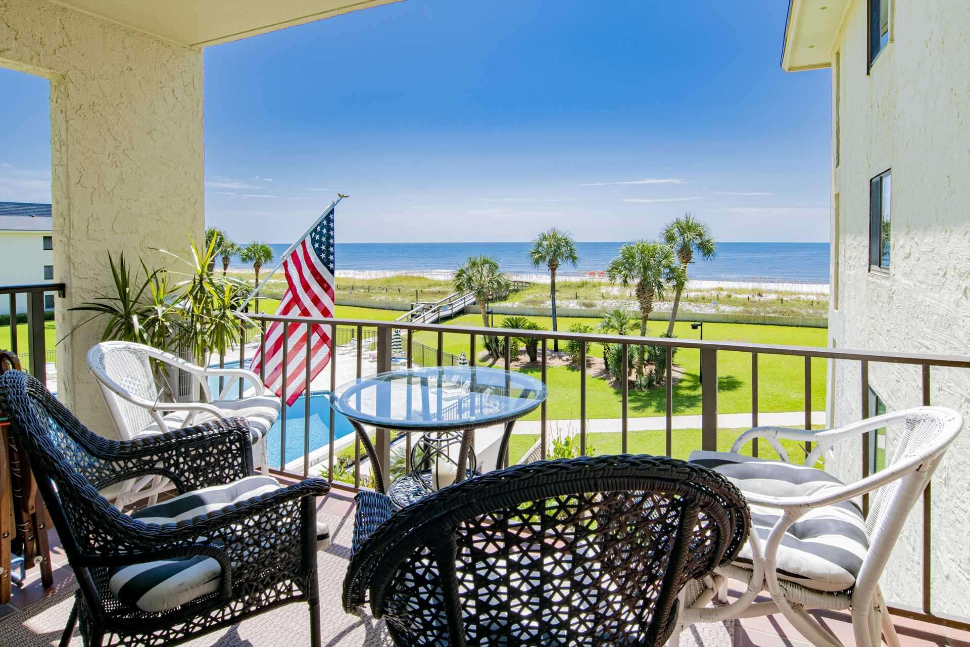 Experience serene beachfront living at Mariner 306, featuring stunning Gulf views, a private balcony, and access to a sparkling pool and tennis courts. Perfect for families or groups up to six.