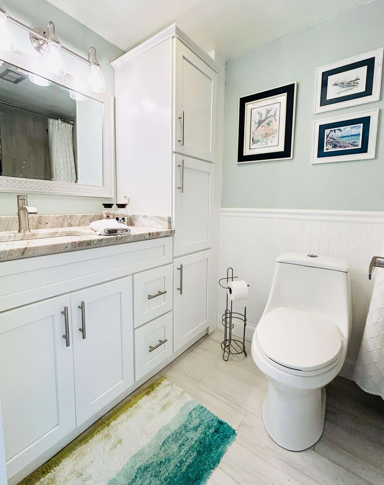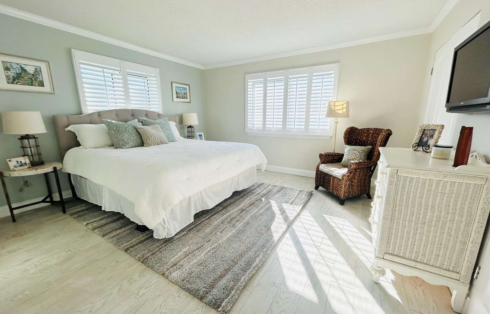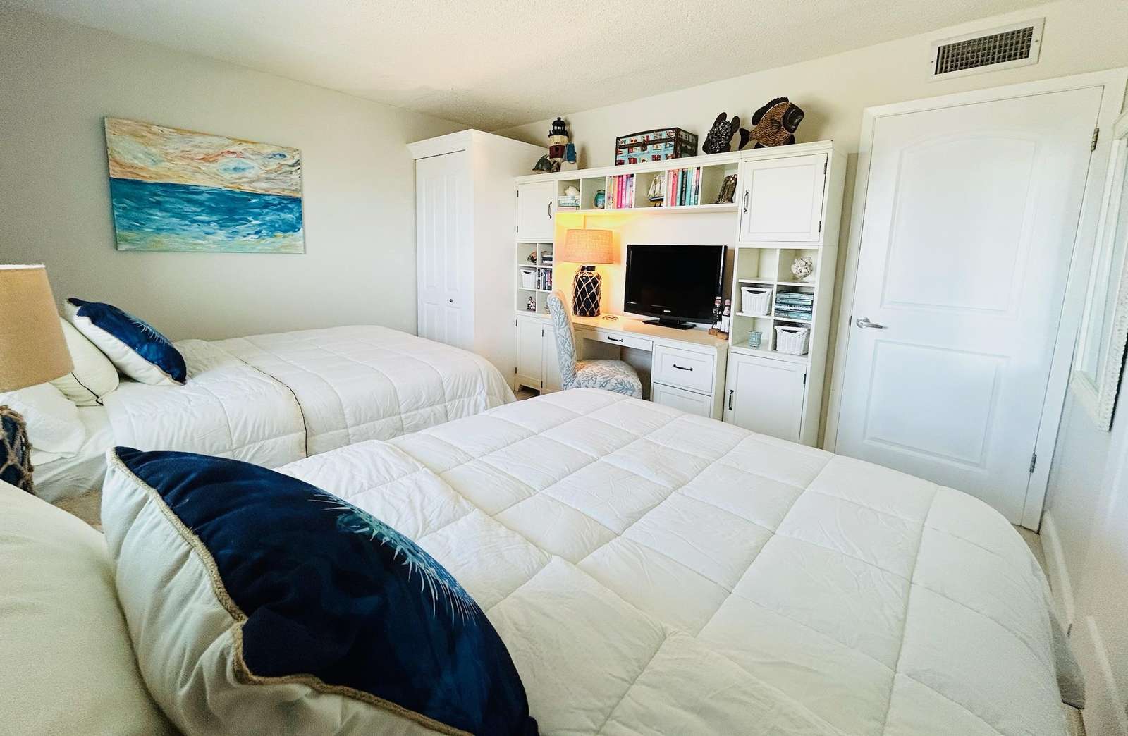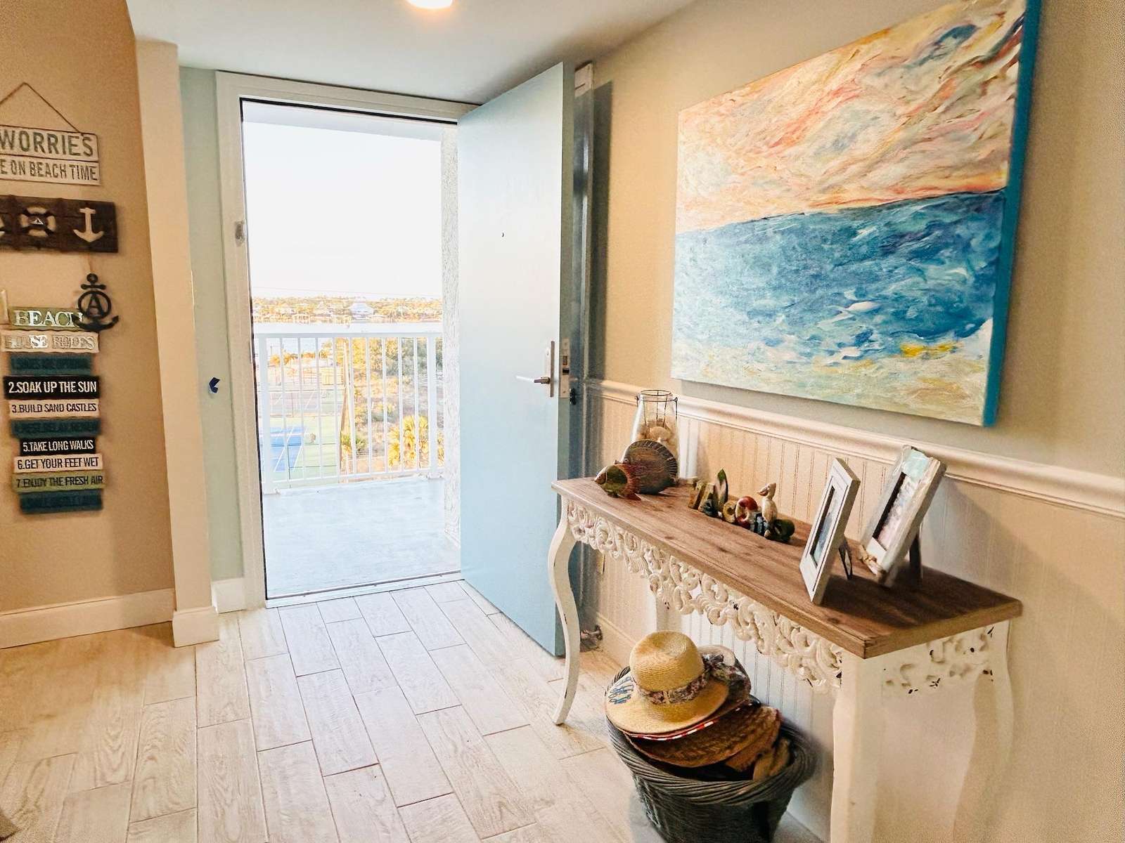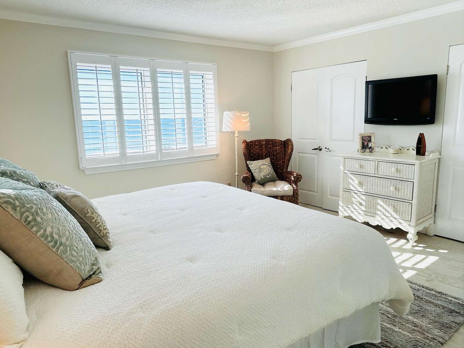 Enjoy coastal luxury at Mariner 512, a completely renovated spacious 2-bedroom 2-bath beachfront retreat nestled on the pristine shores of Perdido Key in Pensacola, Florida. This prime 5th floor end-unit condo offers peace and tranquility, as well as stunning panoramic views of the Gulf of America from a private balcony perfect for morning coffee or sunset dining and relaxation. Inside this bright and airy unit, you'll find modern comforts, including a fully equipped kitchen with a K cup/drip coffee maker combo, stocked spice rack, pots, pans, and other kitchen essentials to accommodate your culinary endeavors. The kitchen also includes scenic views of Ole River and Ono Island. Added conveniences include an in-unit washer and dryer, smart TVs in every room, and high-speed Wi-Fi for all of your streaming services. The expansive living area offers 2 recliner chairs, a brand-new sleeper sofa, a writing desk and a dining table for 6 guests, making it ideal for unwinding after a day spent enjoying the white sandy beaches and turquoise waves. Custom artwork by The Still Waters Studio compliments the coastal decor of this beautiful property, bringing the beauty of Perdido Key into each room. Wake up to spectacular views of the picture-perfect seashore in the master suite, which features a king-sized mattress, newly renovated ensuite bath, smart TV, and plenty of storage. The second bedroom, offering more wonderful views of Ole River and Ono Island, features 2 queen-sized beds, a large closet, a smart TV, and a Pottery Barn desk and bookcase, complete with an array of books and games to entertain guests of all ages.